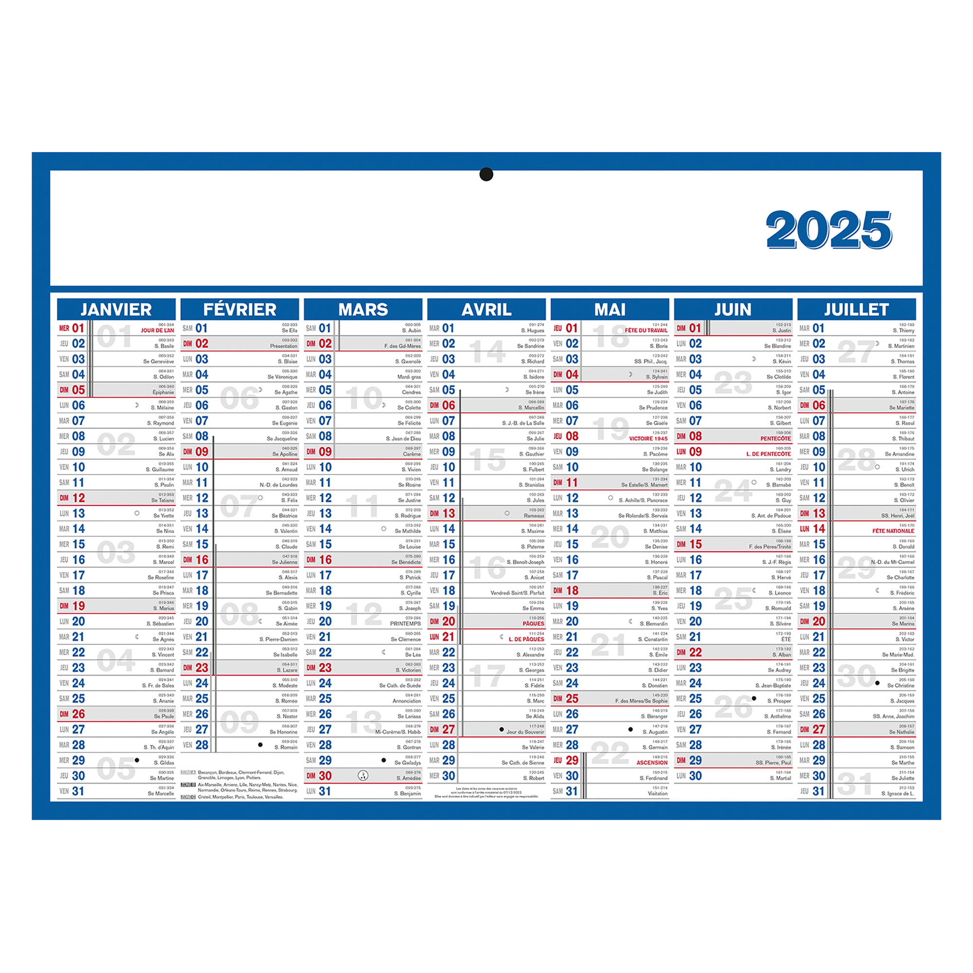 Calendrier semestriel mural année 2024 29 x 39,5 cm on bruneau.lu