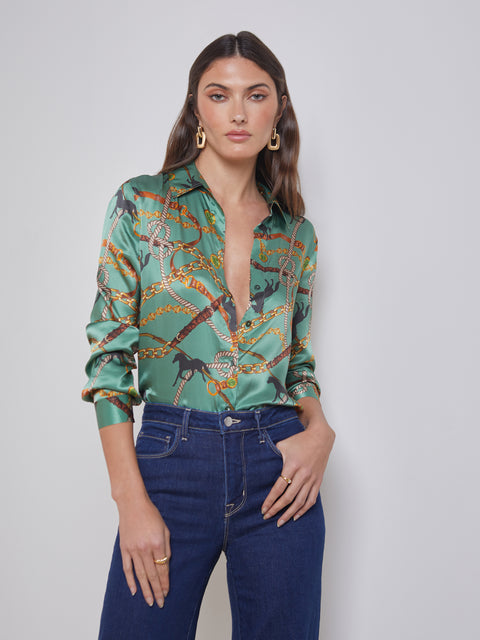 L’AGENCE Tyler Blouse in Frosty Spruce Multi Horse Chain